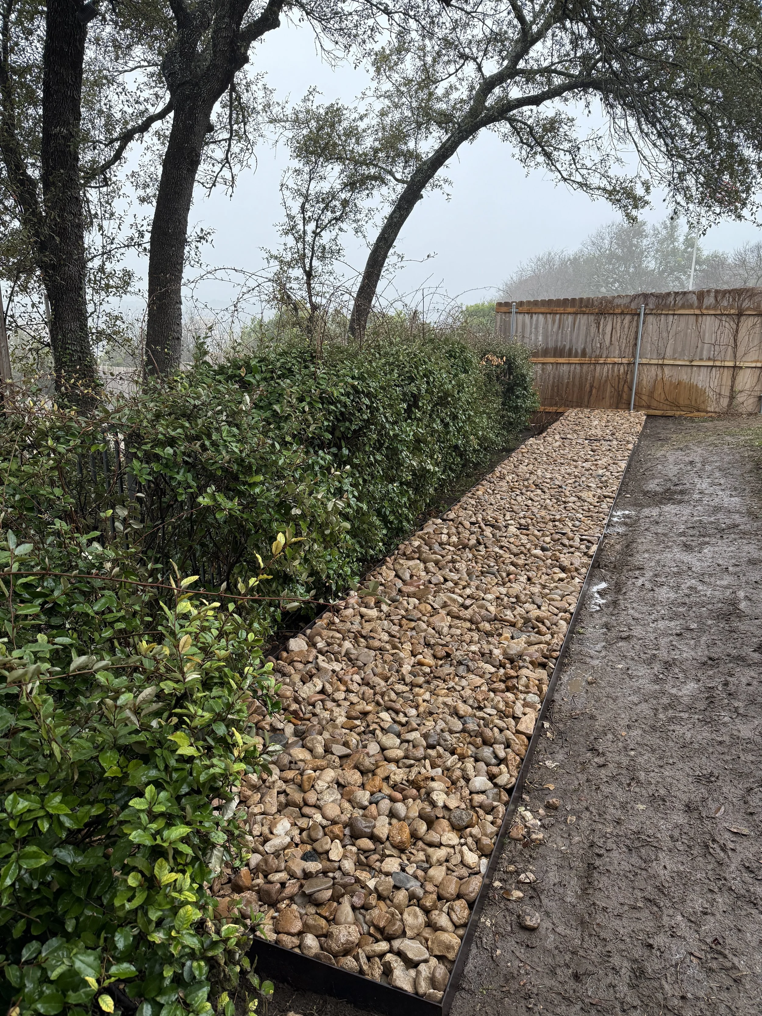 While we design drainage systems across Texas, our installation services focus on Central Texas, including Austin, Dripping Springs, Buda, Kyle, Wimberley, Blanco, Marble Falls, San Marcos, Round Rock, Georgetown, and Pflugerville.